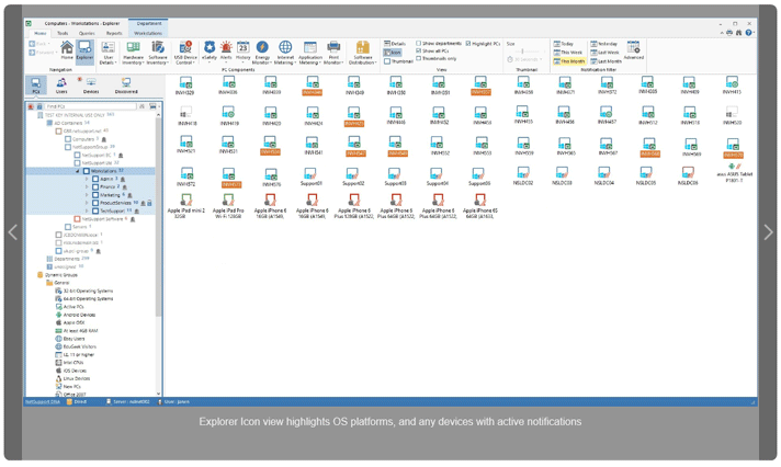 Explorer 모드를 사용하여 모든 PC에 대한 실시간 요약 정보를 얻을 수 있습니다. 선택한 PC는 세 가지 형식 (아이콘, 세부 사항 또는 축소판보기)으로 볼 수 있으며, 원하는 시간 간격 (예 : 5 또는 10 초마다)으로 새로 고칠 수 있습니다.